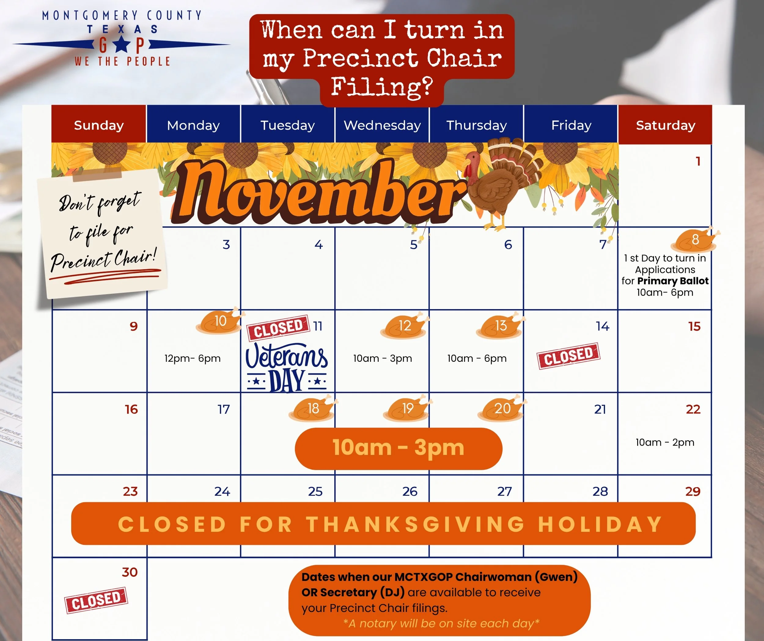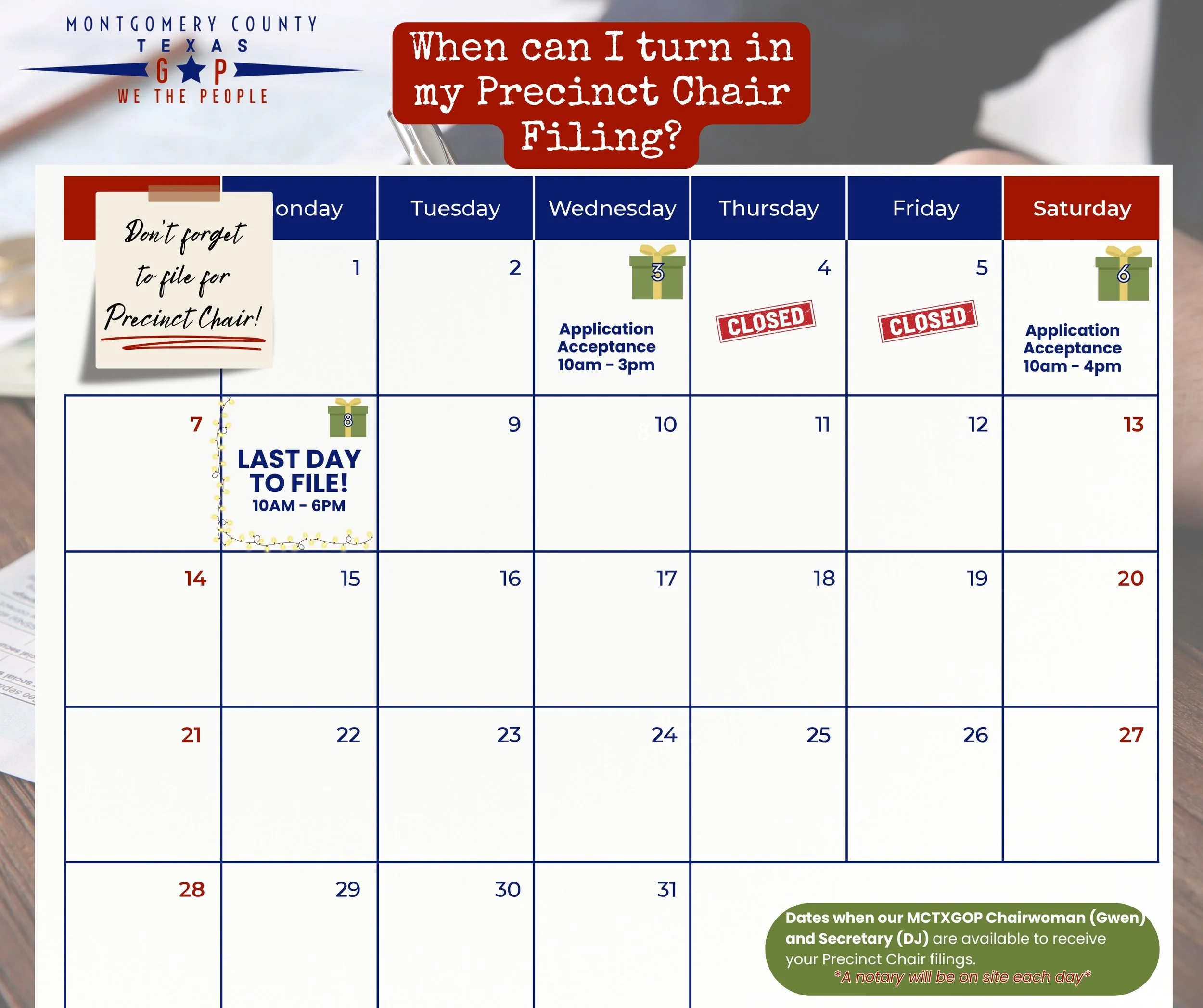 Candidate Filing Notices Download pdf Slide 1 Slide 1 (current slide) Slide 2 Slide 2 (current slide) Slide 3 Slide 3 (current slide) View Precinct Chair filing details View Precinct Chair filing status